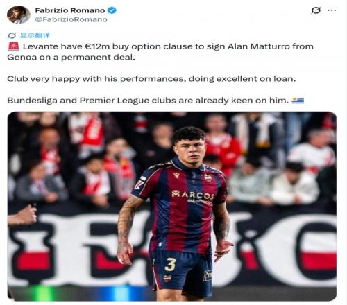 羅馬諾:萊萬特可1200萬歐買斷馬圖羅,德甲、英超俱樂部有意球員