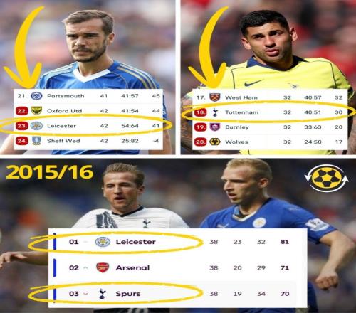 2015/16賽季英超,萊斯特城81分奇跡奪冠,而熱刺以11分之差最終排名第三。