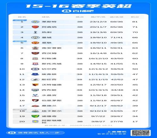而在十年之后,熱刺32輪僅積30分,以2分劣勢身陷降級(jí)區(qū)。萊斯特城則更為落魄,本賽季他們因財(cái)務(wù)違規(guī)被扣6分,目前42輪積41分,僅剩4輪的情況下落后保級(jí)區(qū)4分,有可能要兩連降落入英甲。