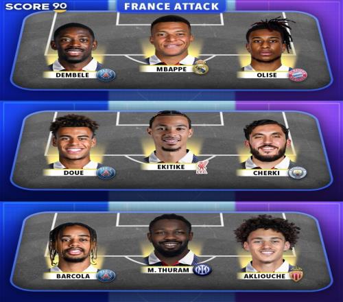 法國國家隊(duì)進(jìn)攻線可以排出多套頂級陣容,球員總身價(jià)超過8.5億歐元。在全球身價(jià)前十的前鋒中,法國球員占了一半。