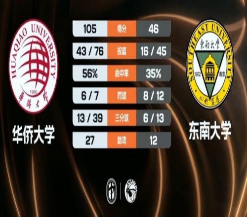 末節(jié)比賽,劉文星得分助攻一肩挑,華僑大學越戰(zhàn)越勇不斷拉開比分,陳澤蘢連投帶罰也止不住頹勢,劉文星搶斷反擊暴扣為球隊劃上圓滿句號。最終,華僑大學105-46大勝東南大學59分。