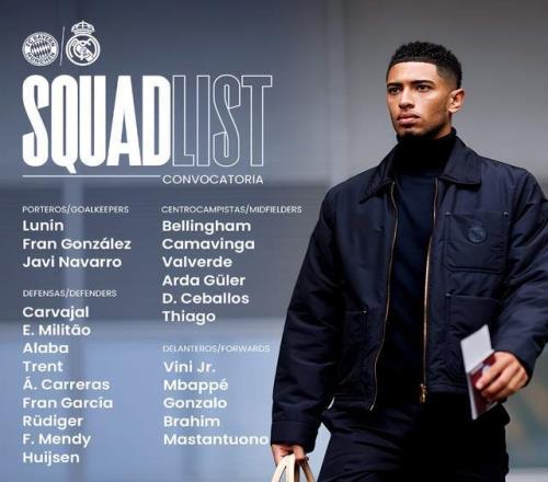 皇馬陣中,貝林厄姆、卡雷拉斯、赫伊森、姆巴佩、維尼修斯5人,如果本場比賽再度染黃,將自動停賽1場??蛻?zhàn)拜仁,皇馬需要逆轉,這5名球員也要謹防染黃。