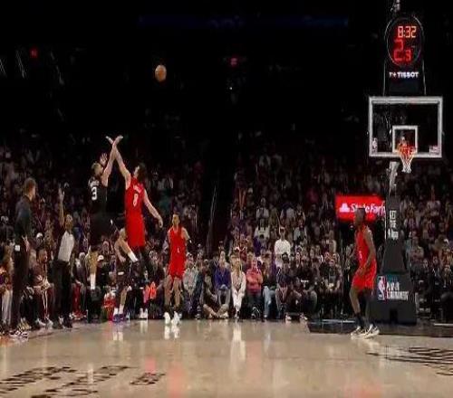 朱哥搶斷風雪哥,夏普3分不中,根子搶下進攻籃板,阿夫迪亞挺身而出3分命中。
