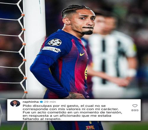 DAZNFutbol的獨(dú)家視頻在Instagram迅速傳播。24小時(shí)內(nèi),拉菲尼亞主動在該視頻下留言道歉:「對不起,我的手勢——這不是與俱樂部價(jià)值觀一致的行為?!?/p>