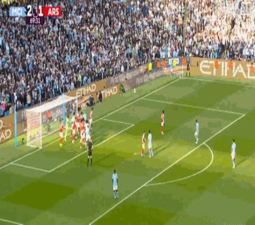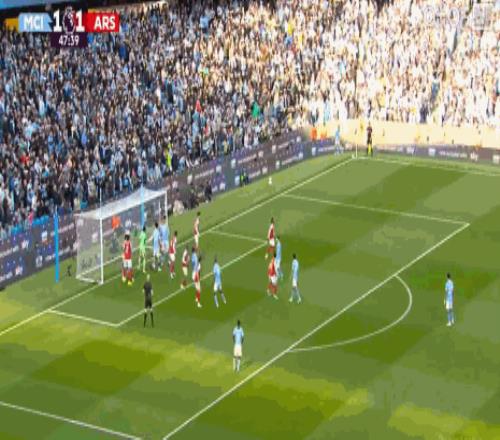 第73分鐘,差一點,加布里埃爾頭球擊中奧賴利變線擊中門柱彈出