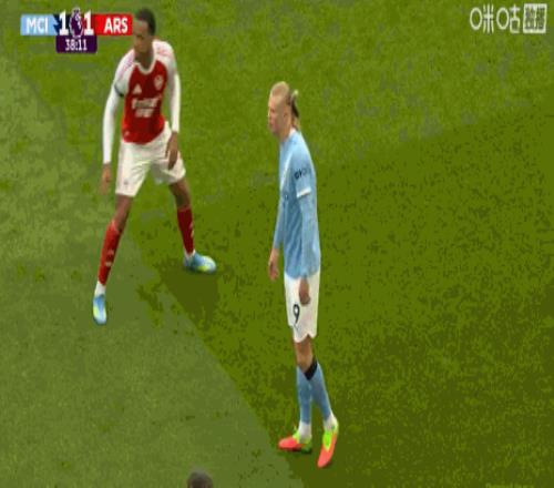 第67分鐘,哈蘭德與加布里埃爾纏斗,前者球衣被撕破