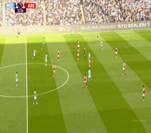 第31分鐘,哈蘭德推進送直塞,賴斯將球破壞