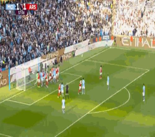 第18分鐘,光速扳平!多納魯馬超巨失誤,哈弗茨將球擋進球門,阿森納1-1曼城!