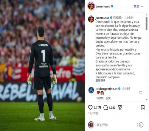 穆索社媒:拼盡全力仍未能奪冠,還有很多歷史等待我們書寫