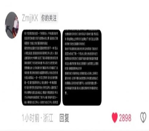 ZmjjKK長文認真回復粉絲:感謝你能從我身上獲得力量和快樂
