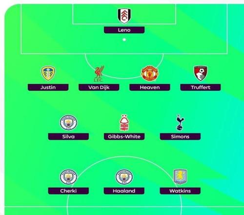 前鋒:謝爾基(曼城)、哈蘭德(曼城)、沃特金斯(維拉)