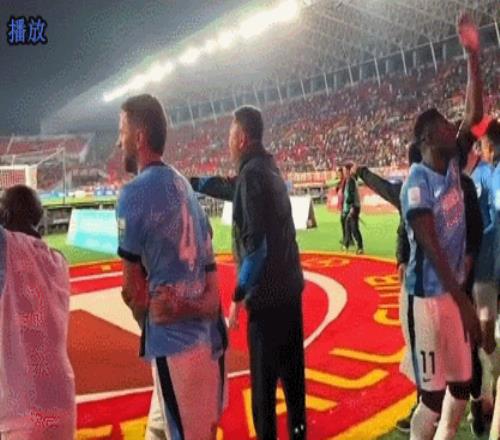 毛偉杰只是一個(gè)縮影,賽后一幕讓人明白為何這支球隊(duì)能夠取得5連勝。賽后大連英博球員在客隊(duì)看臺(tái)前跟遠(yuǎn)征軍慶祝勝利和互動(dòng)時(shí),有視頻拍到讓人點(diǎn)贊的瞬間。大連英博球員紛紛要求攝影記者不要踩主隊(duì)遼寧鐵人的隊(duì)徽(下圖)。原來(lái)他們球員不僅自己不踩,還要求其他人不要踩。