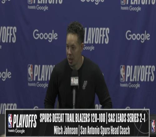 體育播報(bào)4月25日 NBA季后賽西部首輪G3,馬刺120-108戰(zhàn)勝開(kāi)拓者,大比分2-1領(lǐng)先,賽后米奇·約翰遜接受了媒體采訪,以下為采訪全文。